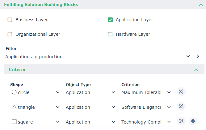 The “Applications in production” filter, which you can add to the Fulfilling Solution Building Blocks, enables to display only the applications that are in production