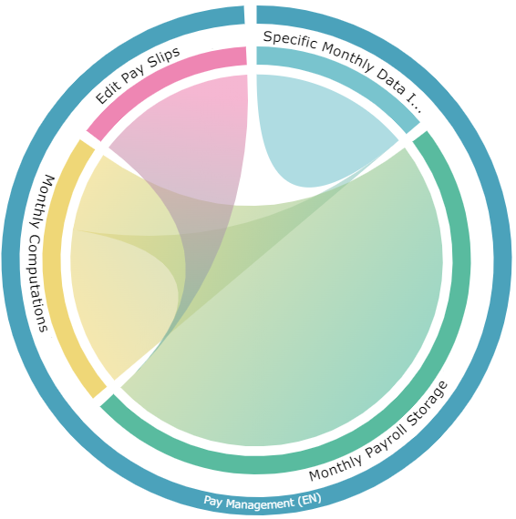 E.g.: click the “Pay Management” application service chord: the diagram displays the connections between the application services of the “Pay Management” application service.