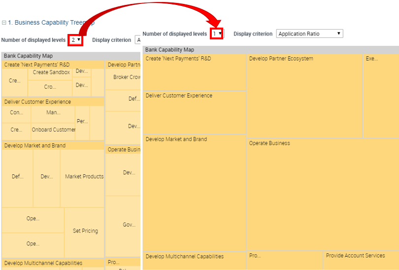 The rectangle area corresponding to each element (e.g.: capability) is modified according to the new display criterion.