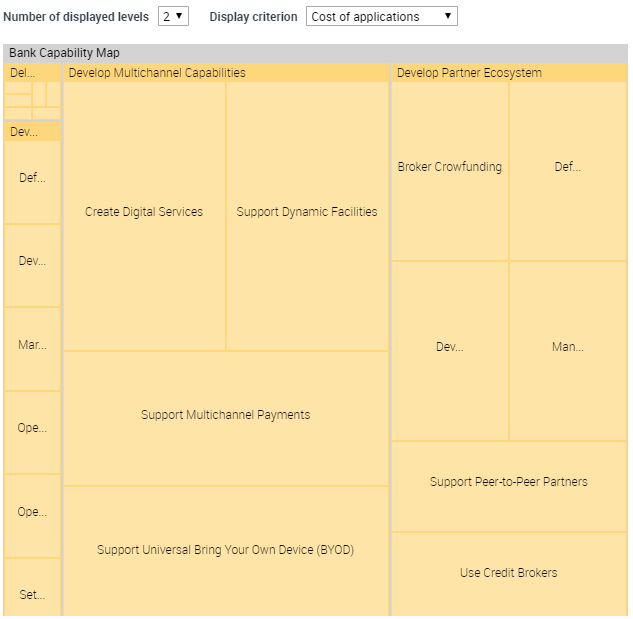This report breaks down a capability hierarchy into a treemap according to three available criteria (parameters):