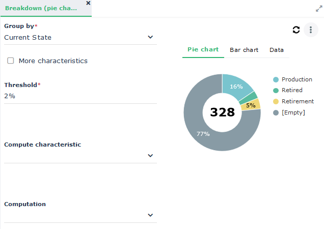 • of breakdown type, in the Group by field, select a grouping characteristic from the list.