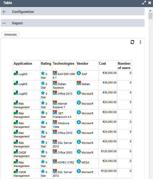 E.g.: with a Report DataSet with the "Application Technologies" definition, you can add applications.