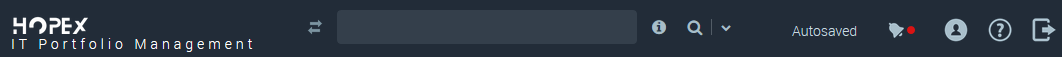 The toolbar is common to all HOPEX desktops and available in all pages of the HOPEX desktops.