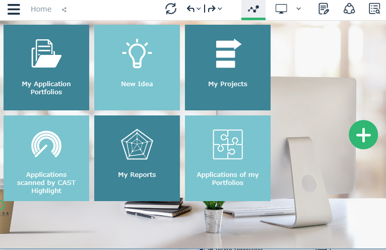 Example: Home Page for the HOPEX IT Portfolio Management Solution desktop.