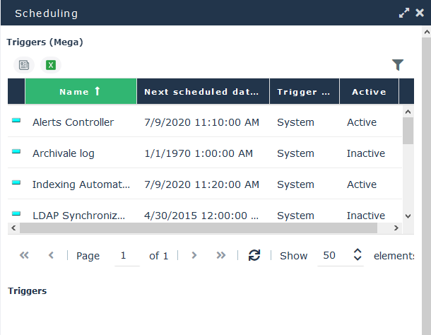 According to your profile (e.g.: HOPEX Customizer, functional Administrator), in your HOPEX desktop, you have access to the dashboard for scheduled Triggers (of jobs):