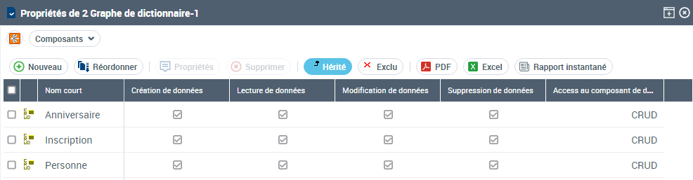 The content of the Data access column is calculated automatically according to the selected actions. This result appears in object form in the concept diagram associated with the business information area.