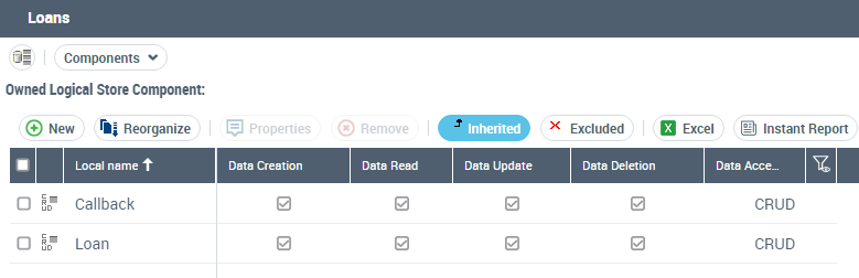 You can connect objects to a data area through components. A component references an object (class or class view) and defines the type of access to the object in question (read-only, modification, deletion, etc.).
