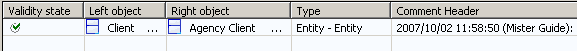 Objects with mappings are ticked green. When you select one of these objects in the mapping tree, its mapping appears in the details window, which by default is at the bottom of the mapping editor. It groups the names of connected objects, the object types and comments where applicable.