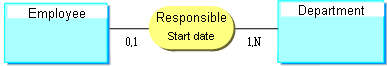 To model that an "employee" is responsible for a "service" and to specify the "start date" of his or her functions, the following data model is created, where start date is a property of the association.