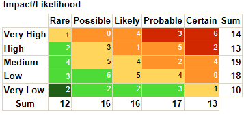 The Risk Manager as well as well as all contributors can display the impact and the likelihood of a set of risks.