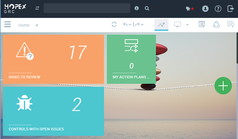 The HOPEX IRM (Integrated Risk Management) desktop is a central access point for risk, control, incident and audit responsible users.