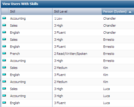 1. In the Administration navigation pane, select Skill Management > View Users With Skills.