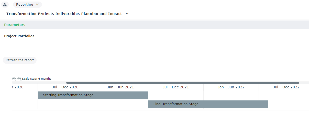 The transformation stages dates are presented in the colons of the dedicated report of the enterprise.