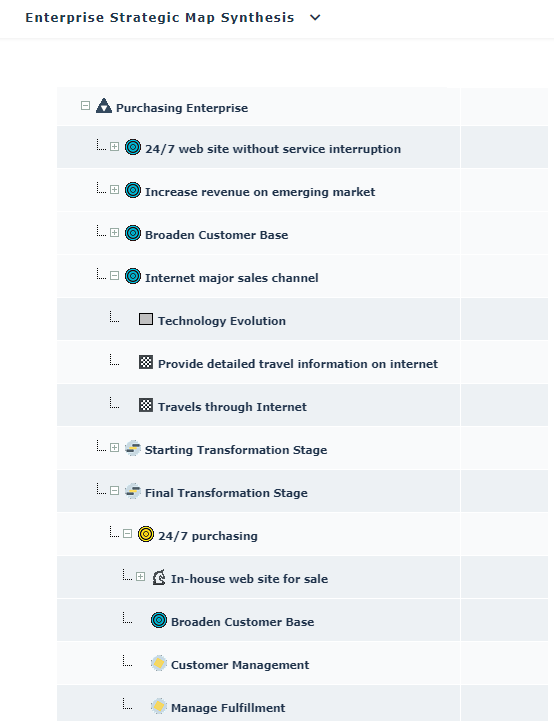 A number of facilities are available to display and analyze the transformation strategy and its deployment.