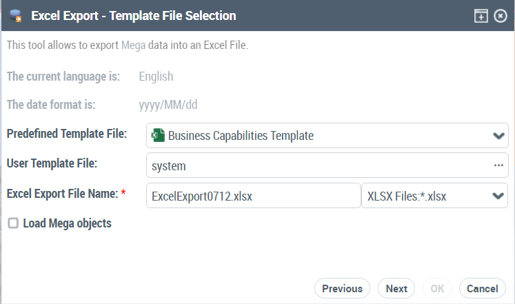 5. In the filed Predefined Template File select Business Capabilities Template.