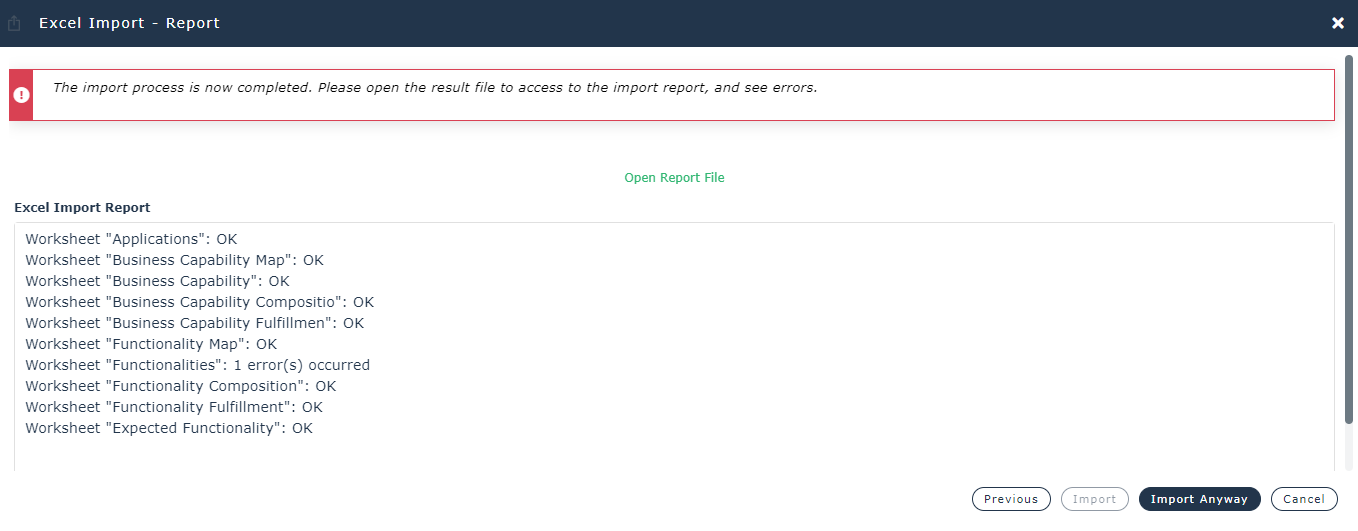 7. To obtain a detailed report of import errors, click the Open Report button.