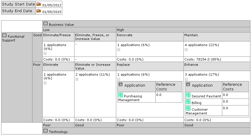 It is also possible to evaluate a set of applications at the portfolio level. This evaluation is performed by the application portfolio manager. See
