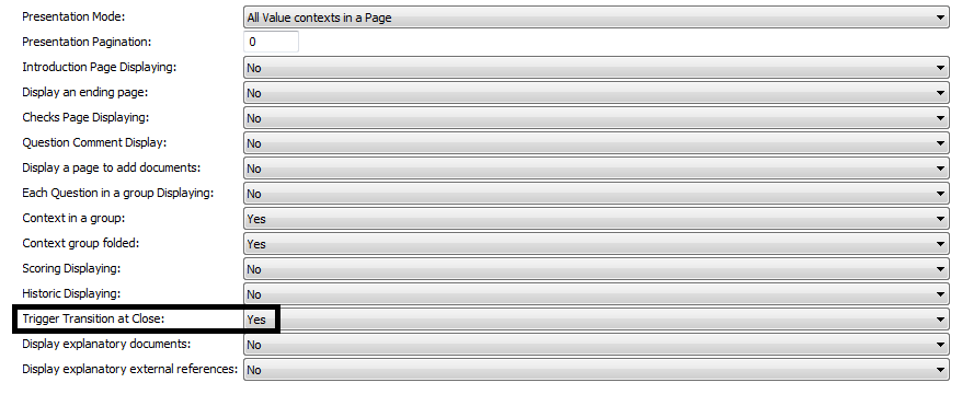 3. In the Trigger Transition at Questionnaire Closing field, select the required value.