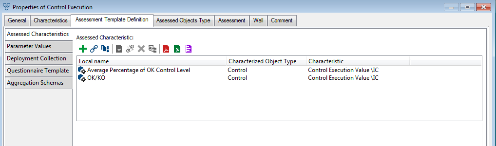 2. In the properties page of an assessment template, select the Assessment Template Definition > Assessed Characteristics tab.