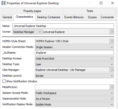 1. Access the Properties of the desktop concerned (example: "Universal Explorer Desktop").