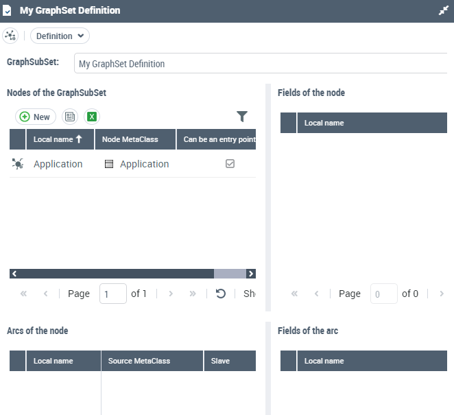 The GraphSubSet definition is automatically initialized with a node with the same MetaClass as the source MetaClass. This node is defined as entry point and its name is the MetaClass name.