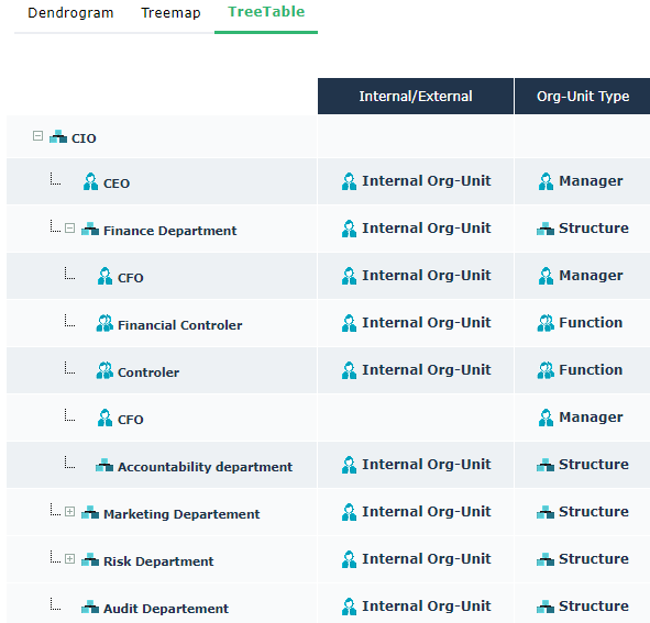 Ex.: this TreeSet is based on the CIO Org-Unit and displays for each Org-Unit child its Internal/External and Org-Units Type values.