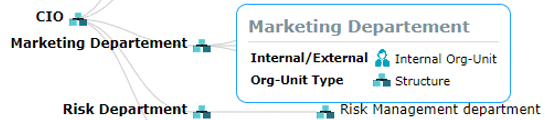 Example: Roll the mouse over "Marketing Departement", its "Internal/External" and "Org-Unit Type" values are displayed in a pop-up window.