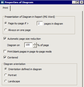 6. In the Presentation of Diagram in Report (MS Word) you can define if you want your diagram to be displayed on one or several pages in the generated report (MS Word):