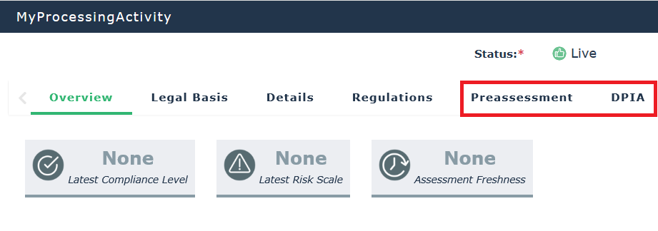 As a Privacy team member assessing processing activities, you need to use the following tabs: