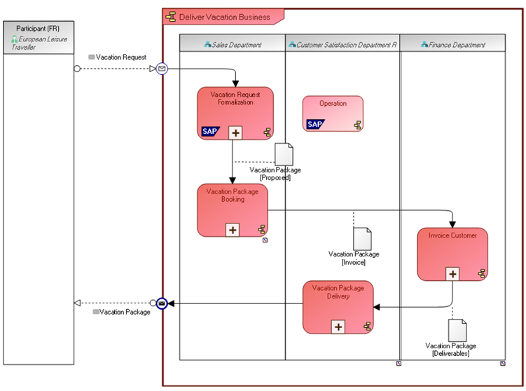 In BPM diagrams, objects that are mapped to SAP objects are "tagged" with a SAP icon: