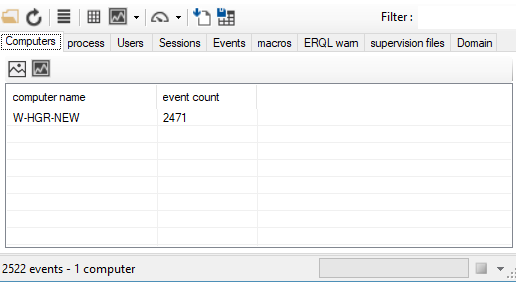 In the Supervision tool, events are grouped by calculated view that gives access to the corresponding list of prefiltered events. Views correspond to the following tabs: