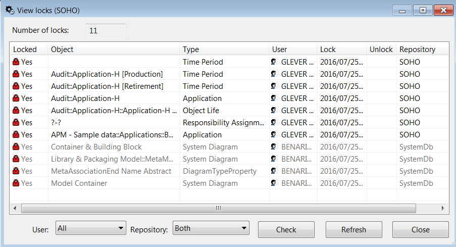 1. In the HOPEX menu bar, select Tools > Manage > View Object Locks.