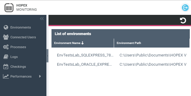 Displays, for each server, information regarding the current processes running in HOPEX. This page requires high administration rights (restricted to MEGA internal use).