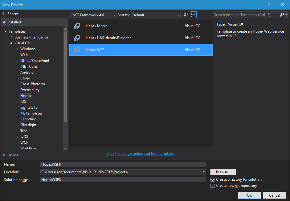 This Visual Studio extension adds a new C# template in Hopex sub-section.