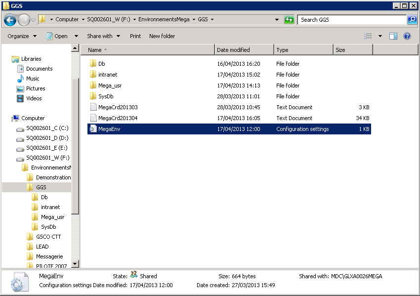 The MegaEnv.ini file is located at the root level of each environment (in this example, in the folder tione database. In thga\GGSy afor the GGS environment) on the source server.