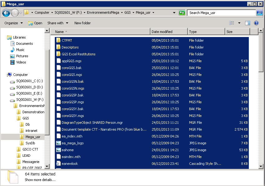 3. Go to the Db folder, and in the sub-folder of each repository you migrated (in this example « D:\Environments\GGS\Db\PROD » contains the data of the repository called “CTFTM_OLD” ).