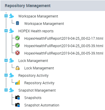 • an Administration tab that contains panes and trees to select the objects to manage.