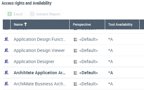 4. In the Access rights and Availability pane, select the Set of UI access rights for which you want to modify access on the tool.