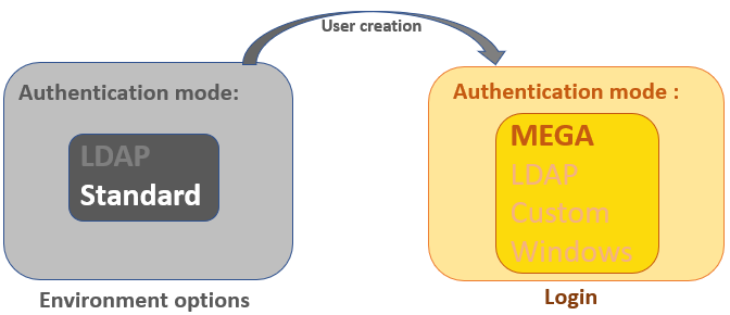 In "Standard" authentication mode, HOPEX (Web Front-End) provides the MEGA authentication mode (by default): the HOPEX authentication service checks that the password entered matches the password stored in HOPEX repository.