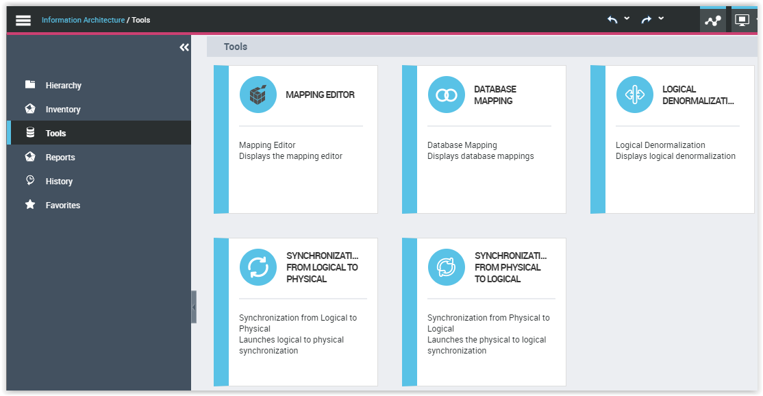 A list of tiles is proposed to help you to use the tools dedicated to the management of your data.