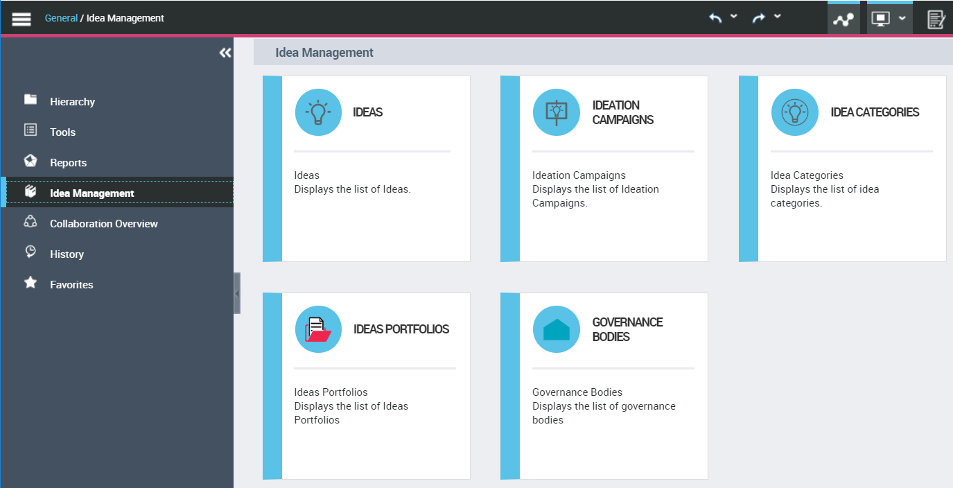 With HOPEX Ideation Management, the ideation process is broken down into three main parts: