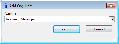 The Create button changes to Connect as soon as you enter the last letter of the name of the org-unit already existing in the repository (example: the "Account Manager" org-unit). This change indicates that the org-unit (example: "Account Manager") is known to the system.