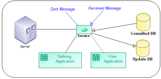 You can also indicate for these services the databases that they consult or update, the messages that they receive or send and the server on which they run (if they don't run on the same workstation as their application).