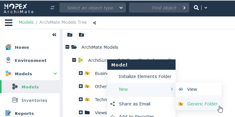 2. Right-click your ArchiMate® Model and select New > Generic Folder.