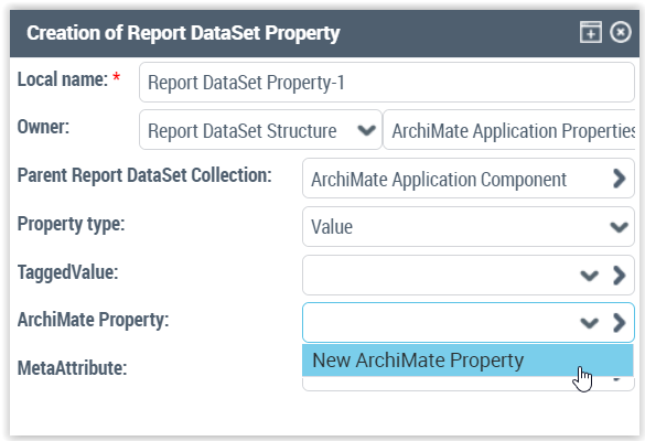 2. In the creation dialog box, select the ArchiMate Property you want to use.