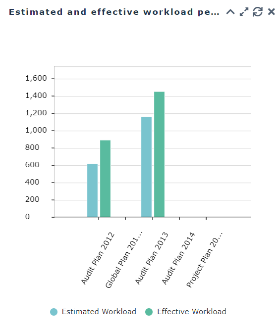 This widget shows evolution over time (by audit plan) of evaluations assigned to audits: