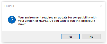 7.1.3. Warning 'Your environment requires an update for compatibility with your version of HOPEX…'