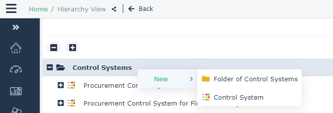 To access the list of control systems from the Processes > Controls & Risks navigation pane:
