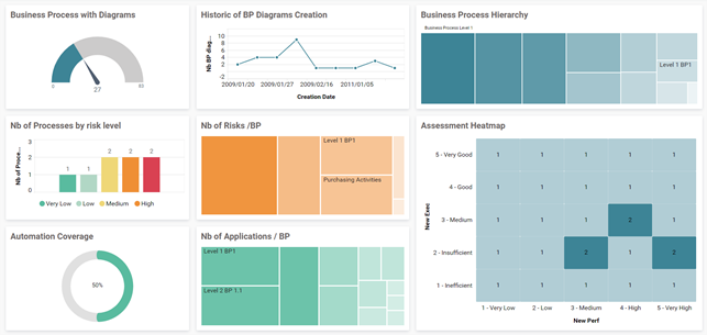 Standard Bold BI dashboards provided with HOPEX Business Process Analysis