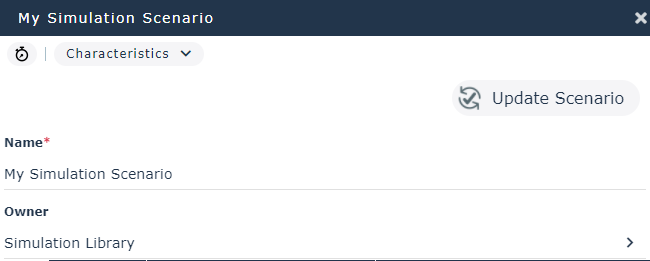 Clicking the Update Scenario button allows to take into account the modifications made on the objects of the scenario or on their parameters.